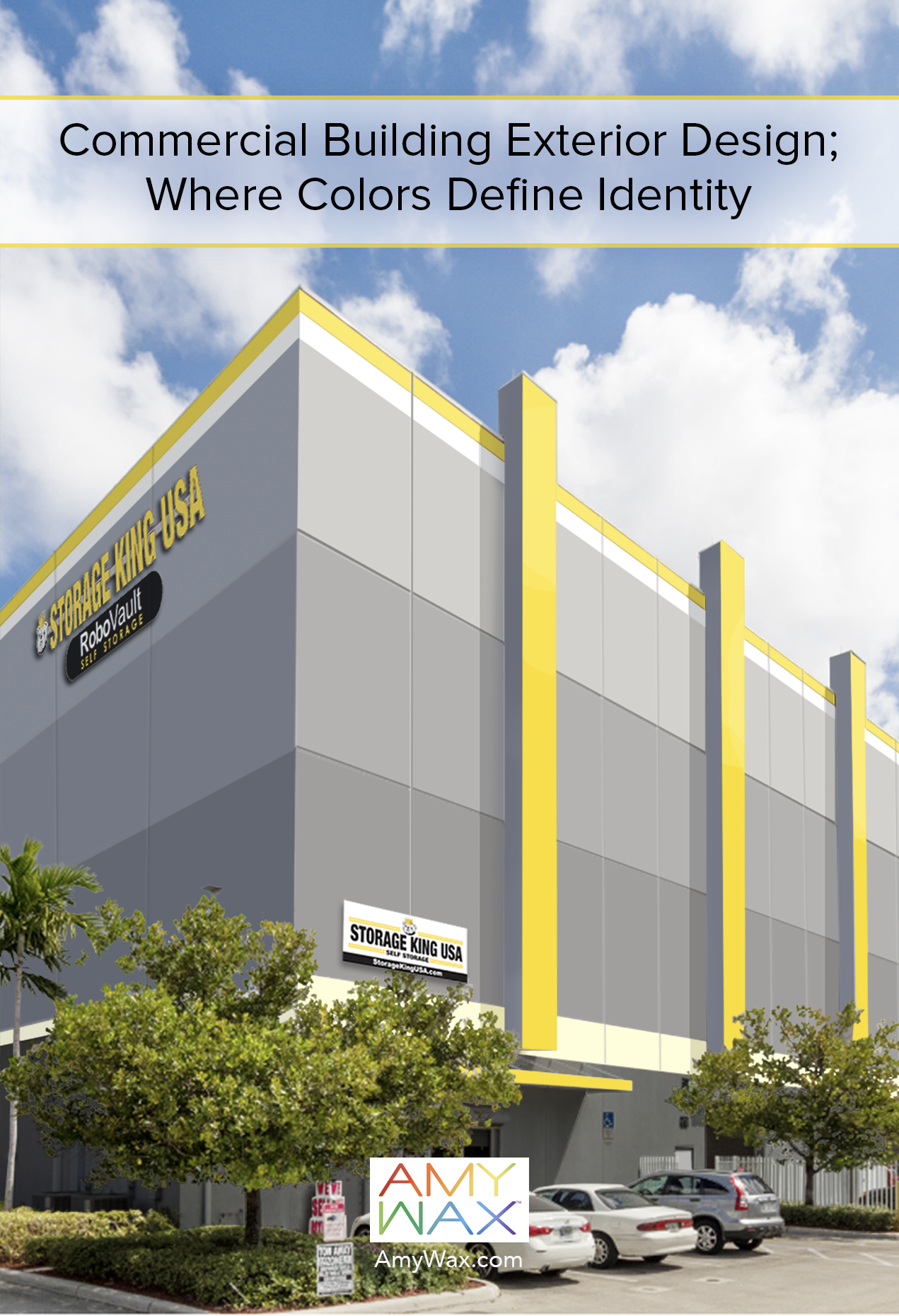 Just as every home is different and reflects each family’s story, so do commercial properties. Every company and building has a unique story, and the color palette is crucial to telling that story! For example, a car dealership, restaurant, or storage facility may want a bright, attention-grabbing facade with high-contrast colors that draw in customers and clearly communicate its function. In contrast, luxury condos, high-end offices, or exclusive clubs might choose more subdued, sleek, refined exteriors that reflect their brand. As the designer, I must understand the specific objectives and identity of the business before any plans are made, which is why there are many consultative meetings before I begin to plan the detailed color palette I am creating for them.